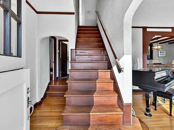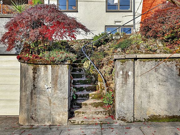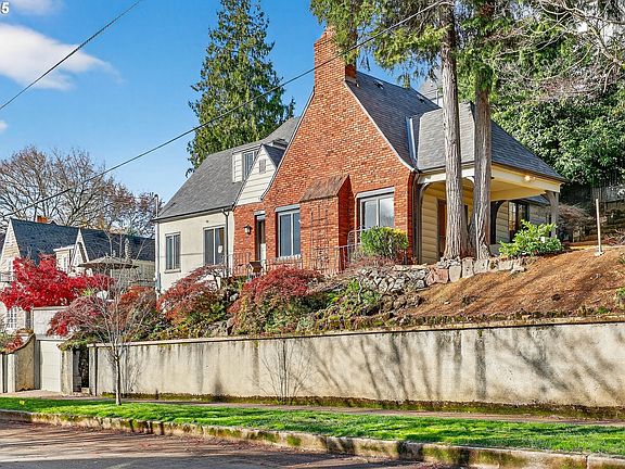 Come home to your very own fairytale English cottage nestled into the base of the Alameda Ridge. Sitting atop the 22 meandering steps from the street is a whimsical wonderland ready for its next chapter. The classic old world charm and features continue as you walk through the Dutch front door onto refinished traditional hardwood floors throughout. You'll be greeted by a grand-piano-sized living room (available for separate purchase) with wood-burning fireplace that adjoins the large raised dining room (or use as an extended living space) with a classic wood beam ceiling and stained trim. The main floor is wrapped with a mix of vintage pane glass and updated dual pane windows for great light and open views. Continuing on you'll find an office/den or what could also be a smaller dining room that then flows on to the efficient kitchen and a breakfast nook with durable slate floors. A comfortable-sized bedroom and updated full bath round out the main floor. Upstairs you'll find a primary bedroom with a sitting area including another fireplace and has its own half bath. There is also an additional large bedroom with a walk-in closet that then leads to a hidden room perfect for a play space or private study. Downstairs is the laundry and room to use for hobbies, workshop or more storage. The basement has direct access to the super oversized 1-car (even almost 2) tuck under garage. Outdoors are extensive hardscape spaces for multiple outdoor living options overlooking the neighborhood. Recent updates include some big ticket items such as: a full tear-off roof and new gutters with fascia boards; new furnace and air conditioning; new electrical panel and main service; and updated full and half bath along with selected new dual pane windows. Make this house located within one of the more notable and desirable areas of close in northeast Portland the place you are proud to call home for many years to come. Living here will be your happily ever after life. [Home Energy Score = 1. HES Report at https://rpt.greenbuildingregistry.com/hes/OR10242515]
