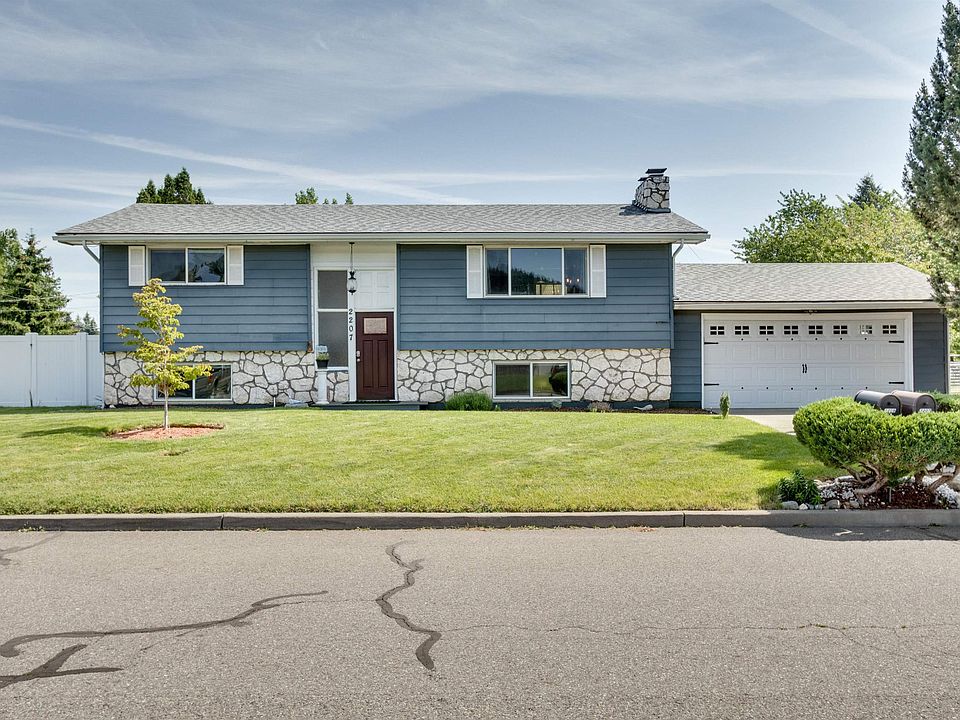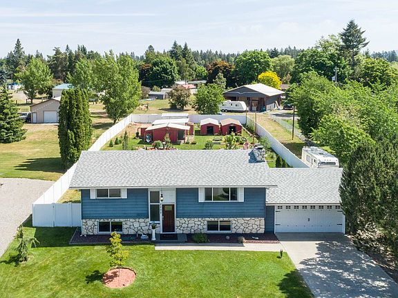 Stunning residence in the serene Chester Terrace neighborhood of Spokane Valley awaits! This remarkable split-entry home features 5 bedrooms and 2 bathrooms, and 2 living rooms providing ample space for comfortable living. The spacious living room boasts a wood-burning fireplace, creating a cozy ambiance for relaxation. The kitchen is a delight with stainless steel appliances and stunning deco tile floors. Access to the basement is conveniently located outside, offering additional storage space and flexibility. Nestled on a generous .55-acre oversized lot, this property offers a tranquil retreat. Relax or entertain guests around your custom fire pit or on the covered deck, which overlooks the expansive backyard. A woodshop and several storage sheds are available, perfect for storing your belongings. Let your gardening dreams come true with a greenhouse and expansive garden area. Vehicle gate allows boat/RV parking and convenience and ease of use for backing in. Don't miss out!