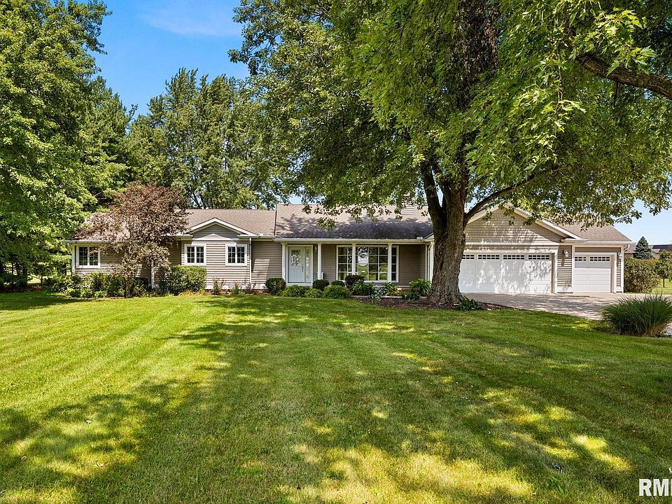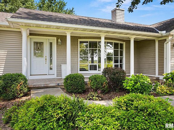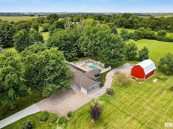 Welcome to this unique ranch home nestled on 4 acres in Dunlap. This home boasts 4 spacious bedrooms and 3.5 bathrooms, all conveniently located on the main floor for easy living. As you enter, you'll be greeted by a charming foyer leading to the inviting living room, complete with a cozy gas fireplace. The heart of the home is the large eat-in kitchen, featuring granite countertops, beautiful cabinetry, a central island, and a handy pantry. Adjacent to the kitchen is the laundry room, a convenient half bathroom, and access to the oversized 3-stall garage. The thoughtfully designed layout includes 4 bedrooms, two of which have their own en-suite full bathrooms. The primary bedroom, a recent addition, offers a retreat-like experience with walk-in closets, a walk-in shower, and a stylish new vanity. The finished basement adds versatile living space with an office/Family room and a sprawling recreation room, perfect for gatherings or relaxation. Step outside to enjoy summer days lounging by the inground pool, entertain guests on the enormous patio, or unwind on the 23x16 covered screened porch. The property also features an outbuilding with brand new metal siding (2024), providing additional storage or workshop space with its concrete floors and Loft area.