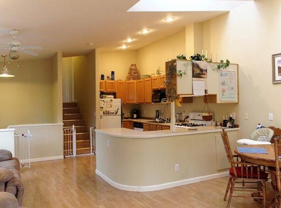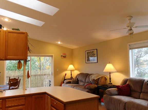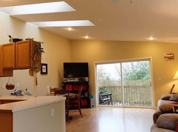 Light, bright, open floor plan offers 4 bedrooms, 2 full bathrooms and private city views. Perfect 1st time buyer, or investor. Vaulted ceilings, skylights, 3 decks with one private deck off master bedroom. Huge storage or bonus room in basement, view of city and foothills, newer hardi plank siding and hot water heater, easy care yard, and convenient location close to Whatcom Falls park, interurban trails, bus line, schools, and shopping.