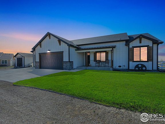 Originally built in 2021 by NVision Custom homes, this stunning 5-bedroom, 3 full-bath custom home is perfectly situated on 1.65 acres in the heart of Eaton, Colorado. Offering 3,851 square feet of living space, a 3 car garage and a yard made for relaxing or entertaining. Step inside to find a thoughtfully designed floor plan with soaring ceilings, custom finishes, and natural light throughout. The gourmet kitchen features premium appliances, a large center island, and plenty of storage, making it the perfect gathering space.The primary suite is a true sanctuary with a luxurious en-suite bath and serene views. Enjoy evenings on the patio, host unforgettable get-togethers in the expansive backyard, or utilize the 875 sq. ft. attached garage, which is perfect for a workshop, hobby space, or additional storage.This property is designed for entertaining, relaxation, and making memories. Whether you're looking for room to grow, a place to host gatherings, or simply a quiet escape, this home offers it all, with no HOA. Schedule your private showing today and experience this exceptional Eaton property for yourself!