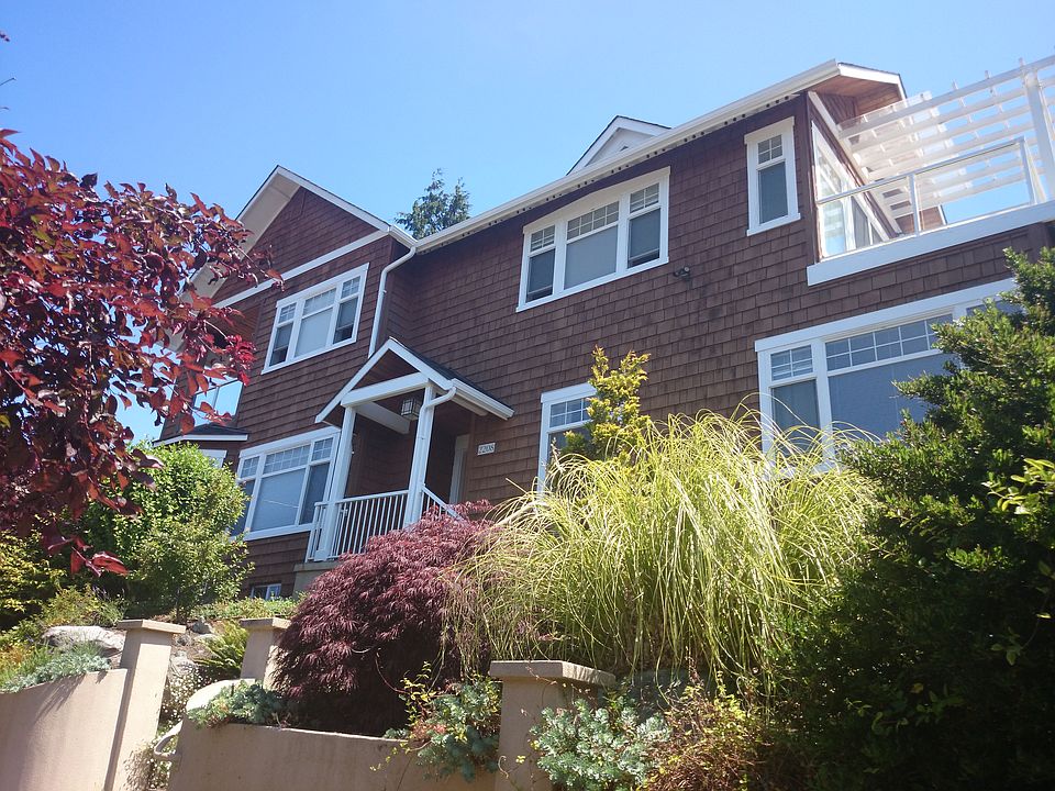 Lovely Shingle-style home perched above street provides privacy, light and fab views of Puget SoundandOlympic Mtns. A few blocks to Magnolia Village, schools, parks, sports fieldsandMounger Pool. Main floor offers chef's kitchen with adj. family rm, 3/4 bath,coveted guest bdrm, spacious view livinganddining rooms. 2nd floor presents huge view master suite w/ vaulted ceilingsandupdated bath, two add'l bedrooms and full bath. Lower level media rm, laundry, 1/2 bath, storage. Attached two-car tandem garage.