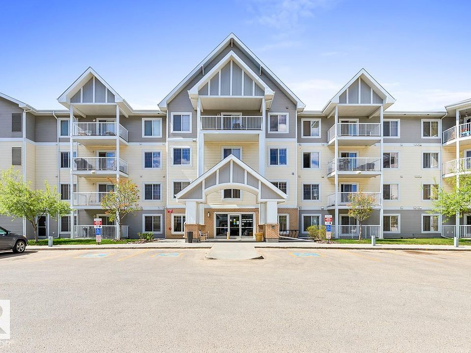 Welcome to Aspen Meadows! Modern Main Floor Living with Green Space Access Step into this bright and welcoming main floor 873 sq ft, 2 bedroom, 2 bathroom home featuring concrete floors and a private deck that opens directly to green space! Perfect for morning coffee, pets, or simply enjoying nature from your doorstep. The kitchen offers sleek modern cabinetry, black appliances, and beautiful granite countertops, ideal for casual dining or entertaining. The spacious living area flows seamlessly to the Northeast-facing deck perfect to enjoy our summers! The large primary bedroom includes a walk-through closet and a private 3-piece ensuite with an oversized shower. A second bedroom is perfect for guests, a home office, or media room. In-suite laundry with a spacious storage room, 1 titled surface stall complete this fantastic condo! Located in a well-maintained building within walking distance to shopping, restaurants, transit, and mins from the Whitemud and Henday!