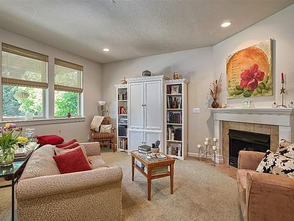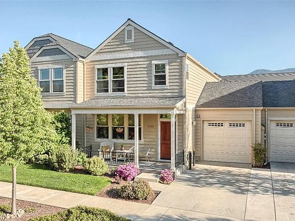 Immaculately maintained townhome conveniently located close to shopping and YMCA. Great open floor plan w/nearly 1600 sq. ft. of living space. Living room with 9 ft ceilings, gas fireplace & tile entry. Beautiful Linnea hardwood flooring, solid surface counters & lots of natural light in the spacious kitchen/dining area which opens to an inviting patio - a perfect oasis for outdoor entertaining. Surrounding the patio are 2 producing pear trees, kiwi berry, blueberry bushes, papyrus, rose bushes & evergreen trees for privacy. Multiple windows & Solatubes create a light & bright office/den on the 2nd floor. Master bedroom has a walk-in closet, coffered ceiling w/fan, recessed lighting & nice large windows to enjoy the mountain views. The washer & dryer are conveniently located near the 2 bedrooms. Attached single-car garage and indoor fire suppression sprinkler system. HOA dues of $100/mo covers landscape maintenance of front yard & open spaces, and all front and back yard irrigation.