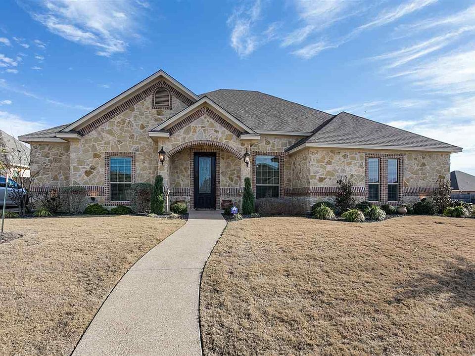 Stunning home by Minor Construction, Inc. 4 bedrooms, 3 baths with open floor plan, formal dining, office area with built-in desk and cabinets, breakfast area, and large covered patio for entertaining. 12' ceilings in living area and full 10' ceilings throughout other areas. Kitchen features level IV granite.