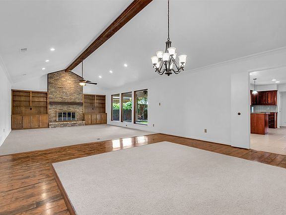 NEWLY PAINTED & NEW CARPET!!! MOVE IN READY!! Welcome to this beautifully updated 4-bedroom home featuring soaring cathedral-style ceilings and a striking wooden beam that adds warmth and architectural charm. The spacious floorplan offers a seamless flow, perfect for both everyday living and entertaining. Thoughtful built-in shelving and cabinetry provide stylish and functional storage throughout the home. One of the four bedrooms is a versatile bonus room complete with a built-in bar—ideal for use as a second living area, media room, or entertainment space. Updated windows flood the home with natural light, highlighting the fresh, neutral paint and brand-new carpeting throughout. With a perfect blend of character and modern updates, this move-in-ready home is a must-see! Generous-sized primary bedroom has separates vanities, granite counters, 2 walk-in closets and built-ins. Two bedrooms share a Jack & Jill bath. Large utility room with room for a refrigerator and spacious walk-in pantry. Private backyard with tons of space for kids or pets to play. The location can’t be beat with access to shopping, DART, dining, golf, parks. NO HOA!