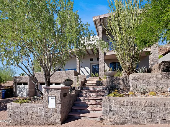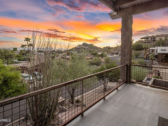 Tucked adjacent the scenic Piestewa Peaks, this is a rare chance to claim mountain serenity in the heart of metro Phoenix, on one of the few streets backing to the Mountain in prestigious Biltmore Highlands. Newly painted home with new wood floors throughout. Enter into open Kitchen with views of both the Phoenix skyline & the dramatic Squaw Peak facing rear yard. The pool and outdoor kitchen face the mountain and hiking trails while offering exceptional privacy. Even more stunning are the views from the one upstairs bedroom with its own private bath and outdoor view deck. This primary bedroom and loft gameroom feature full wetbar and bathroom, accessed via a modern brushed-chrome staircase. Architectural view portals frame panoramic skyline vistas in this contemporary entertainer's home.