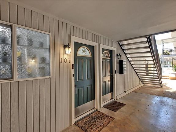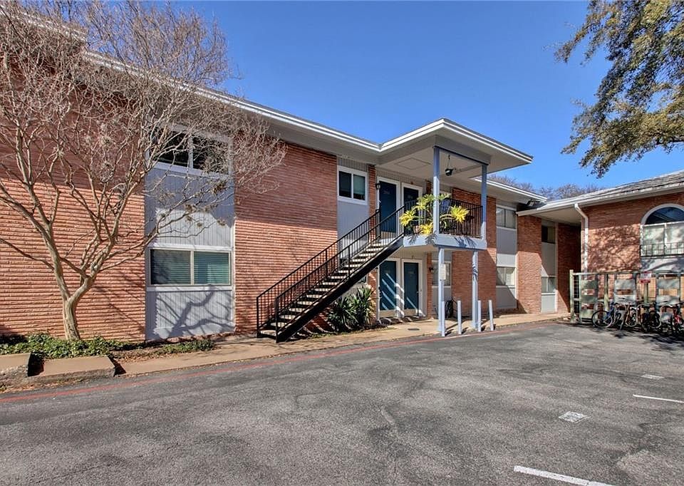 Rare corner, end unit condo with a cool Austin vibe. Updated with Luxury wood look vinyl waterproof flooring, fresh paint, trim, lighting, toilet, installed marble bath surround, new energy efficient doors & windows. Open floorplan, large rooms, 2 nice patios. French doors open to the cov'd patio off the living room, which is currently screened in & has hot tub. The deck off the master bedroom patio was recently replaced & upgraded w/lighting and electrical. This affordable 1st floor condo has 1 reserved parking spot & UT shuttle stops right in front. Westfield Plaza recently underwent exterior renovations in 2020 including fresh paint, new doors and fencing. HOA fees cover water, sewer, trash, water heater, exterior insurance. The building offers onsite laundry facility. Amazing location short walk to beautiful West Enfield Park w/trail access leading to Lady Bird Lake, Deep Eddy Pool & Downtown Austin.
