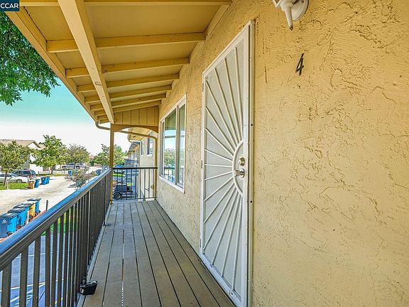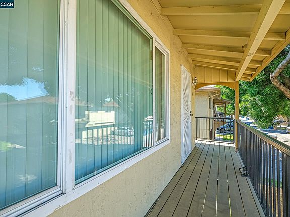 Wonderful single level 2 BR 1 BA condo located on back side of the building above the garage spaces. Stairs leading up to the 2nd floor unit open onto spacious porch overlooking the common area. Quiet location away from L St. Enjoy a relaxing afternoon or evening on your own private porch that no other units in the building have. Unit has nice laminate flooring, dual pane windows, window coverings, galley kitchen with matching white appliances: stove, dishwasher, microwave, and fridge. Unit has two parking spaces: shared garage and driveway directly behind. Laundry room in building and additional storage closet inside garage. Community has swimming pool for those hot summer days.
