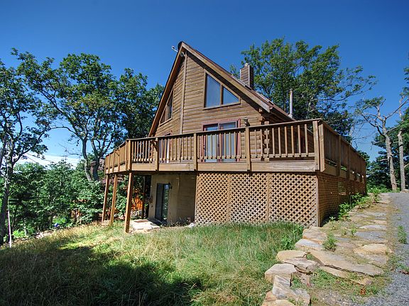A-frame cabin located at the top of Bull Run Mountain. Wrap-around deck with gorgeous views. Hardwood floors, beautiful wood accent walls and ceilings, 2 fireplaces, skylights, picture windows. Two main level bedrooms and full bath, upper level master bedroom, full bath and loft, large rec room, den (4th bdrm), full bath and storage area. Located on 1/2 acre with tons of privacy. Not to be missed!