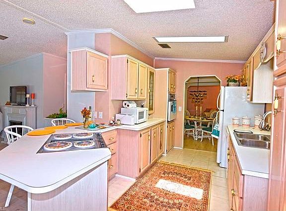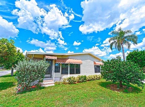 Single family with 2 master suites, Florida room, glassed in lanai, skylights, vaulted ceilings, fireplace, kitchen pantry,corner lot, designer furnished plus a workshop and extra storage. !!!! New flooring and freshly painted. If amenities and activities are what your lifestyle need, come see one of Naples finest resorts. This is a 55+ manufactured home community with a land lease, which includes all taxes and HOA.