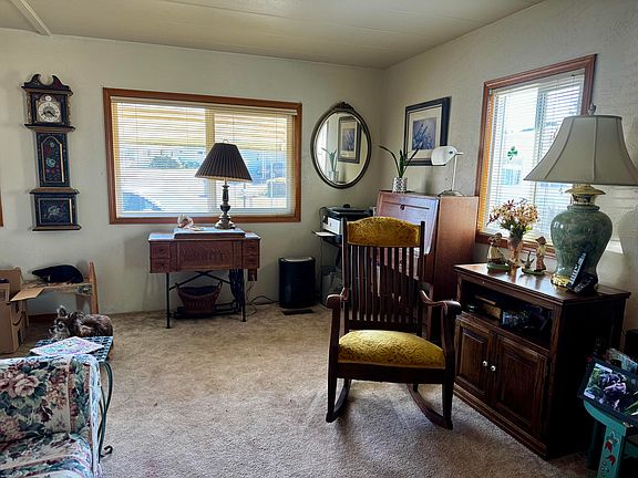 Welcome to easy living in the heart of Fortuna! This beautifully maintained 2-bedroom, 1-bath manufactured home is nestled in a desirable Senior Park, offering comfort, convenience, and community. Enjoy the open floor plan, filled with natural light from large windows that create a warm and inviting atmosphere. The covered front porch is the perfect spot to relax on sunny days and enjoy the peaceful surroundings.