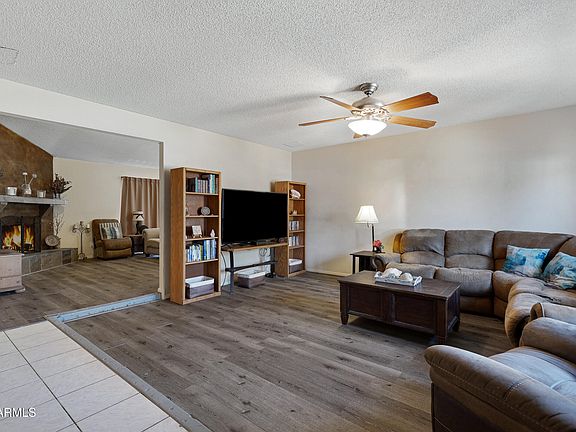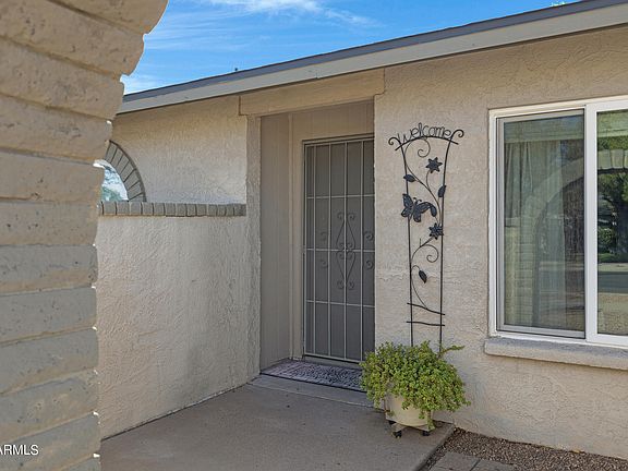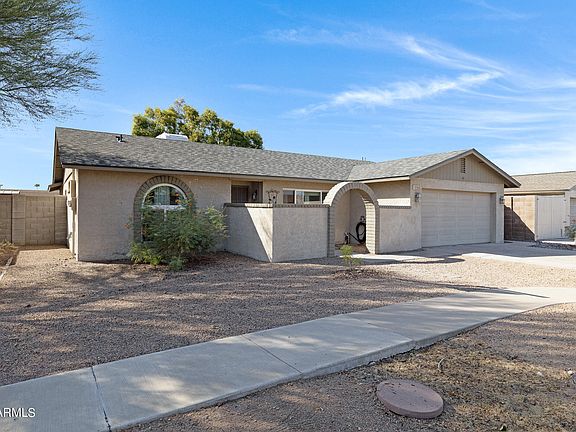 Charming 3 bed / 2 bath home in the sought-after Saratago Lakes Subdivision of Dobson Ranch. This is exactly what you've been searching for. From its delightful curb appeal to the adorable arched entryway that leads into a quaint front courtyard, this property is both inviting & functional—featuring a low-maintenance front yard & 2-car garage. Inside, you'll find a spacious living area & family room featuring vaulted ceilings with a skylight & a cozy fireplace—perfect for those chilly winter nights. The home features stylish wood-look flooring & a neutral color palette that effortlessly complements any décor. The eat-in kitchen boasts ample cabinet & counter space, a pantry, tile backsplash, stainless steel appliances, & a peninsula with a breakfast bar, making it ideal for everyday meals or entertaining. Glass sliders from the living room lead to the back patio, blending indoor & outdoor living. Retreat to the primary bedroom, where you'll enjoy soft carpeting, private outdoor access, & a full ensuite featuring granite countertops, a luxurious jetted tub, & a spacious walk-in closet. The additional bedrooms are generously sized with large closets, & one is currently set up as a craft room complete with a built-in vanity & mirrors. The updated guest bathroom adds modern convenience. Step outside to a large backyard with lush grass & a covered patioperfect for relaxation or gatherings. Walking distance to community pool, spa, and lakes! Dobson Ranch Community allows you to enjoy tennis, pickleball, raquetball, fishing, basketball, swimming pools, parks, & golf! Don't let this one slip away!