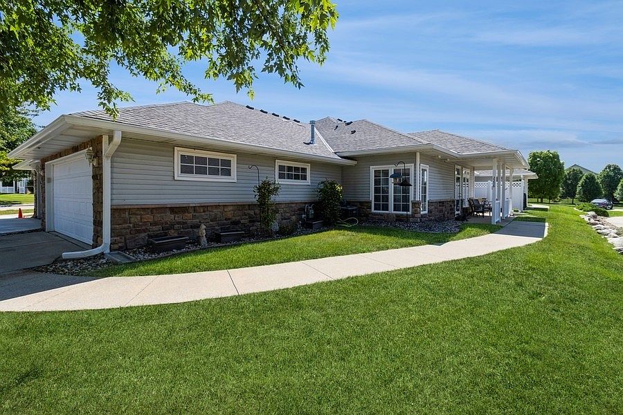 Discover this stunning zero-entry 2-bedroom, 2-bathroom ranch townhome nestled in the serene SW corner of Ankeny. This home boasts an array of modern updates, including elegant LVP wood floors, sleek granite countertops, and stylish new light fixtures. The kitchen is illuminated by two skylights, filling the space with natural light and warmth. Enjoy 1,300 square feet of beautifully finished living space, featuring vaulted ceilings in the living and dining areas for an open, airy feel. The oversized 2-car garage comes equipped with a Du Pont Storm Room and ample attic storage. New roof and water heater in 2022. Don't miss the chance to make this exceptional home yours! All information obtained from seller and public records.
