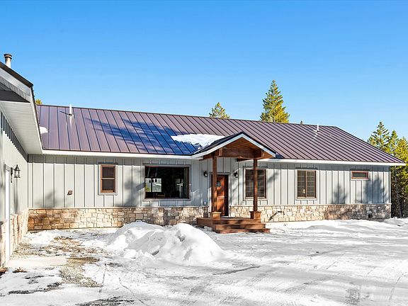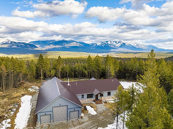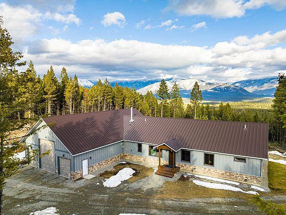 The location is private, the acreage is gorgeous, the house is brand new and the VIEWS ARE SPECTACULAR! What a setting for this state-of-the-art 3 bedroom, 2 bath home on 80 acres with NO COVENANTS bordering USFS and within walking distance of Frank Lake! No detail was overlooked in the construction of this masterpiece. Inside you will find hand-scraped oak hardwood flooring, picture windows to take in the incredible views, custom tile work, and Silverado knotty alder cabinets and doors. The kitchen is gourmet with a Bluestar propane range, blued stainless steel sinks, both vegetable and farm, a walk-in pantry and gorgeous black leathered tempest quartzite countertops. In addition to the main living room that has a cozy pellet stove, there is a second atrium living space with vaulted ceilings and a full glass window wall overlooking the views. The primary suite has a 8x8 deck, a cedar closet, and an ensuite bathroom with slate flooring, double sinks with granite counters, and a huge custom walk-in tile shower with dual shower heads. One of the guest bedrooms includes additional space above the closet, reached by a built-in wooden ladder, and the guest bathroom also has a custom walk-in tile shower. Further bonuses include basement cold storage hidden by a secret door and a large laundry room off the garage. The garage itself is a sight to behold, at 36x50 square feet with one 14 foot door, two 8 foot doors and a large mechanical room that is plumbed for a half bath. The home is fully set up for off-grid living with a wood-fired boiler furnace, a back-up propane furnace, 9 solar panels, three 48 volt batteries and a generator. If you are looking for a well-built home that can withstand all the elements, privacy that surpasses your expectations, a nearby fishing lake and acres and acres of public land, then this is the place for you! Electricity is about 1300 feet from the corner of the property. Also available for purchase on 40 acres. See documents for feature sheet. Call/Text Rebecca Kyle 406-260-5339 or your real estate professional.