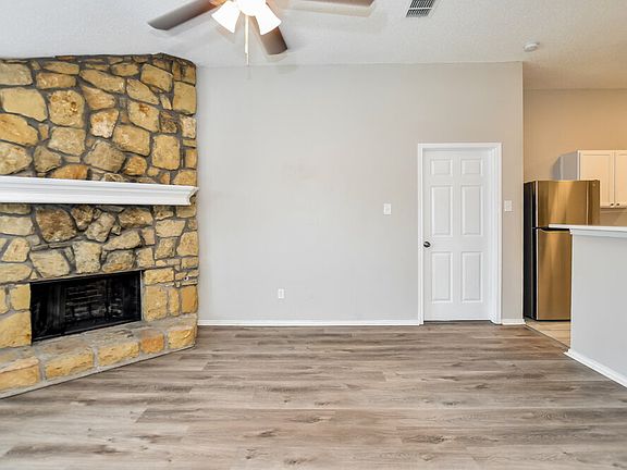 Some images have been virtually staged to help showcase the potential of spaces in the home. The furnishings shown are for illustrative purposes only and are not included in the home. Watch the world go by from the comfort of this three-bedroom, two-bathroom renovated rental home in Forney, Texas that includes an attached garage and a large, fenced-in backyard. Enjoy spending time in the living room where you'll find wood-look flooring, a lighted ceiling fan, and a gorgeous stone fireplace that extends to the ceiling. Home cooks will enjoy the cozy feeling of the kitchen that features white cabinets, stainless-steel appliances, and white countertops. Relax in the private, primary bathroom with a garden tub, walk-in shower, dual-vanity sinks, and a walk-in closet. Venture outside to get some fresh air on the patio. This home is located near several recreational areas including a pond and paved walking trails.