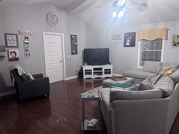 2208 Tick Ridge Rd, Glasgow, KY, offers the perfect blend of peaceful country living and convenient access to town. Situated on a picturesque 1-acre lot, this charming 3-bedroom, 2-bath home boasts stunning views of rolling hills and mature, well-established landscaping. Inside, the open floor plan is enhanced by a vaulted ceiling, creating a spacious and inviting atmosphere. The kitchen features beautiful granite countertops, while hardwood floors add warmth and elegance throughout the main living areas, with cozy carpet in the bedrooms. The master suite includes a generous walk-in closet for ample storage. Outdoor living is a dream with a large covered deck, complete with a ceiling fan and TV hookup—perfect for relaxing while taking in the scenic countryside. Additional features include a larger 2-car attached garage and a walk-under crawl space with its own garage for extra storage or workspace. Enjoy the best of both worlds—tranquil, rural surroundings just minutes from all the conveniences of Glasgow!