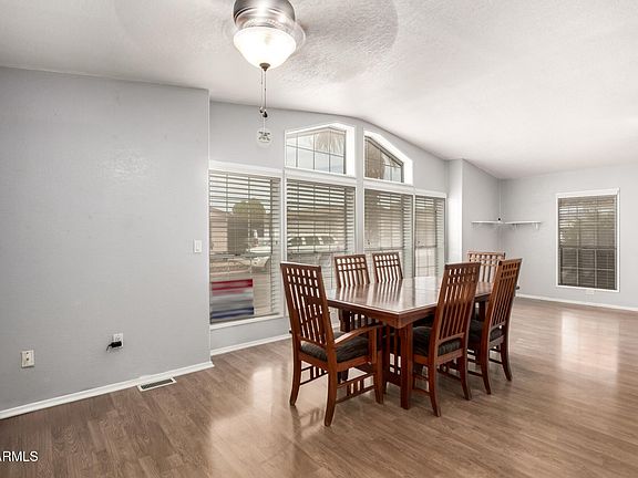 Discover the charm & convenience of this beautifully maintained 2 bed 2 bath home, nestled in a sought-after 55+ community. Step inside to an inviting open floor plan with an abundance of natural light.The spacious living area, featuring attractive wood-look flooring, flows effortlessly into a large formal dining space — ideal for hosting gatherings or enjoying a quiet meal.