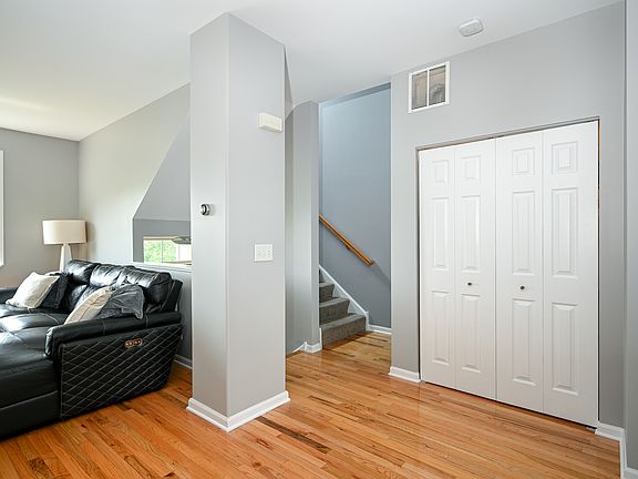 Pretty as a picture! 3 story spacious townhome in secluded subdivision minutes from everything! Enjoy the rustic setting with direct views of the forest preserve, pond, dog park, and bike path. This 3 bedroom 2.5 bath boasts an open floor plan with hardwood in entry way, staircase, living room and dining room. Enter to the cozy 3 sided fireplace as a natural room separator. Updated 12x24 tile in your custom eat-in kitchen with white cabinets, built in breakfast bar, stainless steel appliances, granite countertops, glass backsplash, custom lighting and attached balcony with access to below. Cute updated powder room, large storage closet and laundry room are located on the main level too. Make your way up to the Second level with large landing and another huge storage closet and an oversized master suite with attached dual vanity master bathroom and huge walk in closet with built in organizers, large second bedroom with closet and full-sized updated bathroom. Lower level has a 3rd bedroom (could be office/playroom/2nd family room/game room) and attached 2+ car garage. Entire home has been freshly painted and all original lighting removed! Move-in Ready!! Hurry!