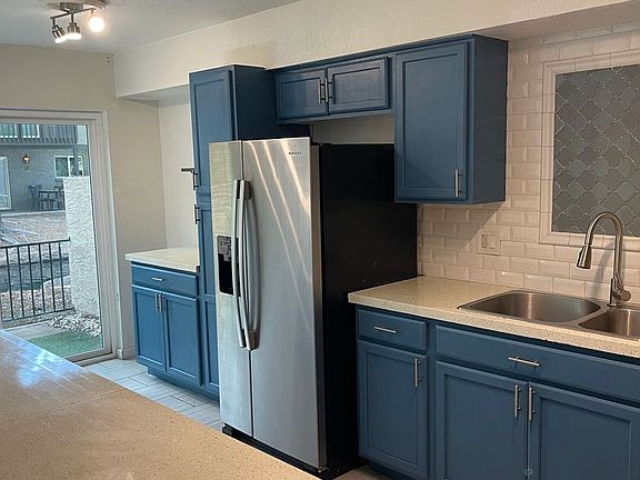 Welcome to this stunning 3 bedroom, 2.5 bathroom home in Mesa, AZ. This modern house features beautiful blue cabinets, stainless steel appliances, white quartz countertops, subway tile backsplash, and plenty of cabinet space. The house boasts beautiful tile flooring throughout, custom closet, and an abundance of natural lighting. Step outside to enjoy the artificial grass in the patio, complete with a landscaped yard and a view of the lake from balcony and patio. With a large green grass area nearby, this home is perfect for enjoying the outdoors. Don't miss out on this amazing opportunity to make this house your home.