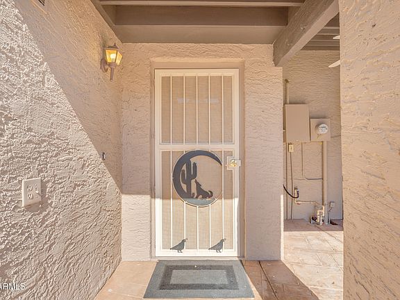 Welcome to this beautiful townhome, offering both convenience and comfort in Dobson Ranch . Easy-care tile and viny flooring are throughout the main level. The open eating area, bay window with storage and the walk in pantry makes this a well designed kitchen. The private patio features an electric awning that extends out offering shade on sunny days as well as additional built-in storage for your outdoor essentials. Inside, the extra shelving and added cabinetry provide additional storage options you won't find in similar units. The extended 1 car garage w/cabinets and half bath are also on the main level. Dobson Ranch amenities include multiple pools, scenic lakeside walking trails, tennis courts, pickleball, fishing, and three recreation centers and golf course.
