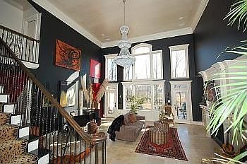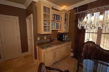 Seamless first floor of travertine. All hardwood oak floors upstairs, granite in kitchen and all bathrooms, truly custom lighting (including swarvoski crystal chandeliers) Two Remote controlled gas fireplaces. Antique reproduction door knobs - large, stamped concrete rear deck - fully fenced back yard. Front gas lamps w/inside controls - The kitchen overlooks the family room with a remote controlled gas fireplace flanked by paladin windows that look out onto the one of the largest wooded backyards in the neighorhood. Great room features floor to ceiling two story windows that pulls in the unobstructed views of the enormous back lawn and wetland grasses.