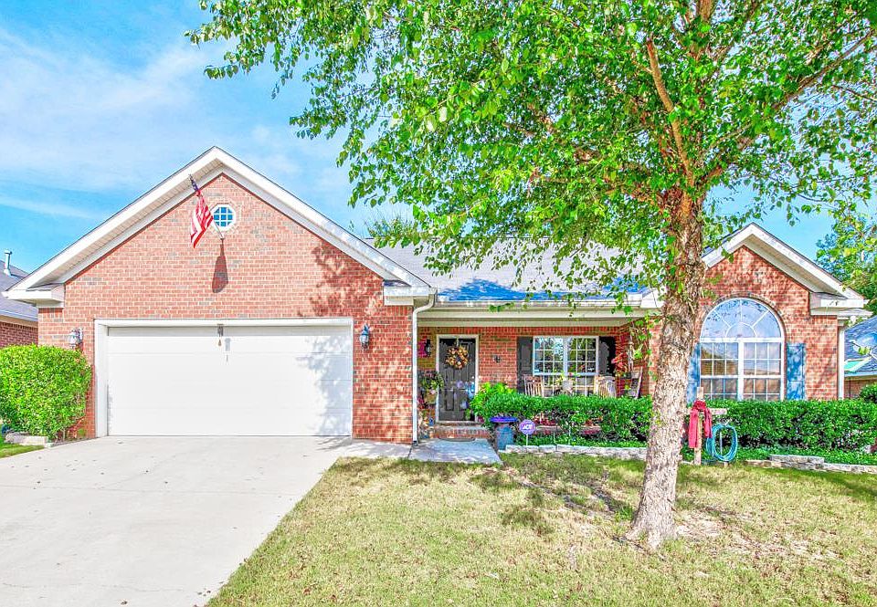 Fabulous brick rocking chair front porch 4 bedroom 2 bath with huge attic...possibly could finish for living space! Living room with tray ceiling & fan! Nice dining room with tray ceiling & chair rail! Spacious kitchen with built in microwave, pantry & room for island! Sunroom also makes great home office space! Owners suite with tray ceiling with fan, bath with tub, separate shower, double sink vanity & walk in closet! Nice size spare bedrooms with ceiling fans & good closet space! Spare bath with double sink vanity closet is perfect for guests or children! Laundry room with linen closet and washer dryer negotiable! Wonderful large covered rocking chair back porch! Fire pit! Full sprinkler! Fenced yard! Pond is great water feature! Extra deep & wide garage with room for work bench! Added gutters! Hot water heater 4 years new! Hurry to get in this great school system!