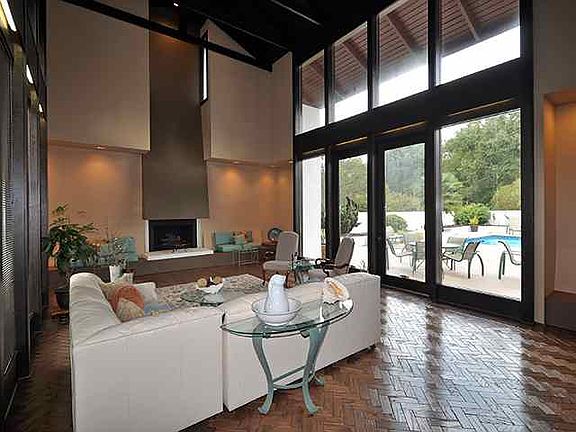 Impressive and unique home has over 5,500 square feet of space dedicated to enjoyment inside and out! Many of the rooms have been freshly painted and updated. Close to everything, it's located on nearly 5 acres in a neighborhood of large estates. Built in an 'L' shape, this home wraps around the focal point swimming pool and huge patio area. Floor to ceiling windows give expansive pool views from almost every room, while multiple balconies beckon you out to enjoy the fresh air. Perfect for both formal and informal entertaining with 3 living areas, formal dining room, spacious kitchen and of course plenty of room around the pool. The pampering master bedroom suite includes his and her bathrooms, a sitting area and two closets. Too numerous to mention, some of the wonderful details include real wood parquet floors, 20' cathedral ceilings, extensive built-in cabinets, a loft / office area, a backyard koi pond and more. Recent upgrades include a total kitchen renovation and a new roof.
