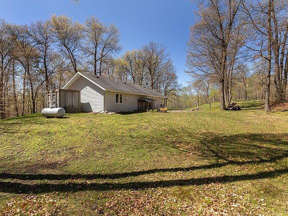 This quaint 2-bedroom, 1-bathroom home rests on over 4 acres of scenic landscape, offering wheelchair accessibility and tranquility. Its serene surroundings boast abundant wildlife, providing a peaceful retreat. Situated near picturesque lakes and bike trails, outdoor adventures await just beyond the doorstep. The property features several sheds for convenient storage, ensuring ample space for outdoor gear and tools. Inside, new flooring in the hallway and bedrooms adds a touch of modern comfort. Whether relaxing in the quietude of nature or exploring the nearby trails, this charming abode provides a perfect blend of rural charm and modern convenience.