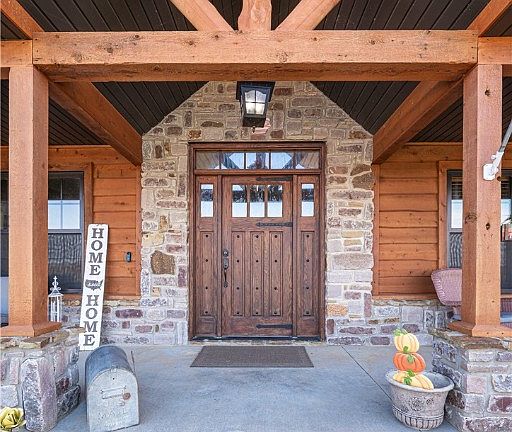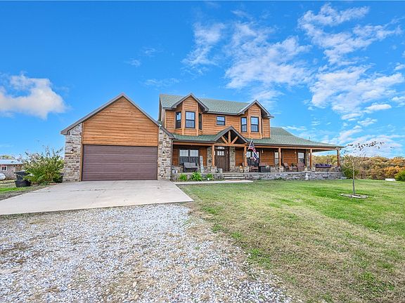 Experience peaceful country living on 18 stunning acres with beautiful views! This spacious 5-bedroom, 4.5-bath home features a gourmet kitchen with custom cabinetry, a stone wood-burning fireplace, and soaring cathedral ceilings. The open living area includes a wet bar—perfect for entertaining or relaxing evenings at home. The finished basement offers plenty of additional living space, ideal for a media room, game room, or guest suite. Enjoy the tranquility of nature all around you while still being a short drive to Gravette and Bentonville amenities. This one-of-a-kind property combines comfort, elegance, and privacy in a breathtaking setting.