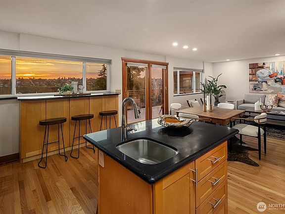 Beautifully updated Queen Anne mid-century with sweeping views of the Sound, Olympics, and Magnolia. Light-filled main level opens to a spacious deck with dramatic west-facing sunsets. Upper-level primary retreat features a custom closet and ensuite bath. The versatile lower level, with separate entrance and power meter, easily converts to a MIL suite. Rare attached double garage plus carport and extra off-street parking. Zoned L2 for development potential. Strong rental history with whole-house rents of $5K+/mo.