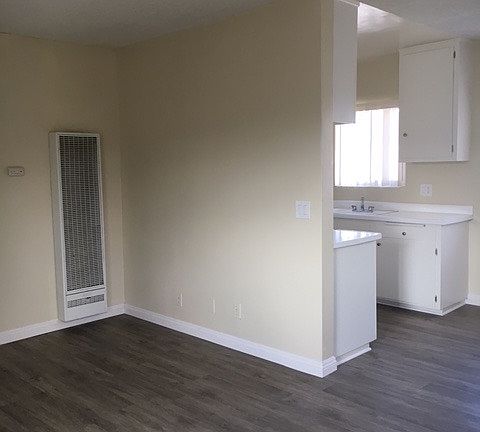 1 bedroom, 1 bath upstairs unit. Freshly painted unit with laminate flooring throughout. Stove and refrigerator included. Unit comes with a one car garage. Laundry room onsite.