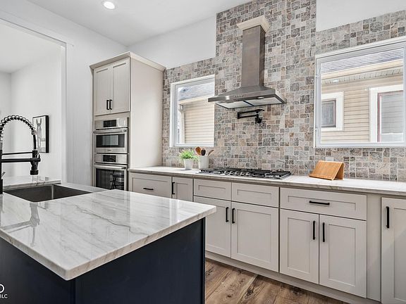 This stunning home boasts luxury vinyl plank flooring throughout, creating a seamless, modern aesthetic that flows from room to room. The open-concept design brings together the spacious great room and a gourmet kitchen, perfect for both everyday living and entertaining. The kitchen is a true centerpiece, featuring a waterfall-edge quartz breakfast bar ideal for casual dining, along with a breakfast nook that opens to the backyard deck. The fenced yard provides privacy while still offering the perfect space for outdoor gatherings. Upstairs, convenience meets function with the laundry room thoughtfully located near the bedrooms. The primary suite is a private retreat, complete with his-and-hers walk-in closets, a spa-like bathroom with a marble-wrapped soaking tub, a walk-in shower with a built-in bench, and a private water closet for added comfort. Step outside to your own balcony off the primary suite-an inviting spot to enjoy a morning coffee, unwind in the evenings, or simply take in a quiet moment. Designed for both style and comfort, this home combines thoughtful details with modern finishes, making it a true sanctuary inside and out.