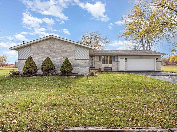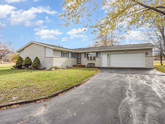 "1 YEAR AMERICA'S PREFERRED HOME WARRANTY" AND MOTIVATED SELLER!! Welcome to this beautiful 3 bedroom, 1 1/2 bath home nestled on a spacious 2 acre lot which includes an orchard with 2 pear trees, 1 apple tree and large garden area. THIS HOME IS MOVE IN READY! The open kitchen opens up to an expansive dining room that showcases the brick wood burning fireplace and many large windows. First floor laundry room, well water, septic tank, central A/C and natural gas. Fully finished basement includes a built in 10' x 2' bar area perfect for entertaining and family gatherings. A classic charm with a gas burning fireplace adds to that feeling of home!! The 2.5 car garage is equipped with a disabled ramp and a 35/'x 55' pole barn. House and garage are very well insulated and offers a lot of storage. The land behind the house has been organically farmed (Centennial Farm) and testing has shown NO toxic substances. This is a MUST see.