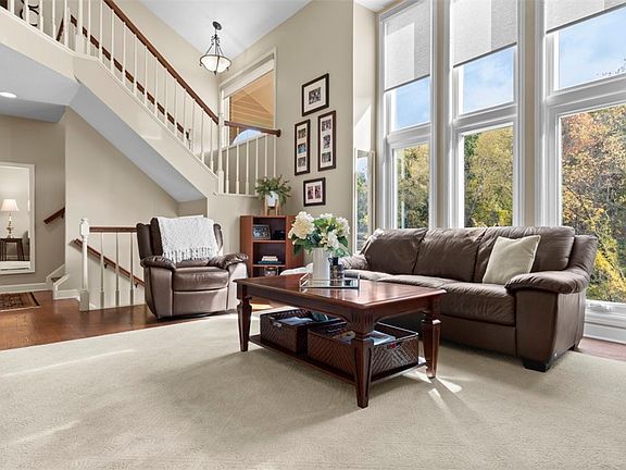 The spacious finished basement features high ceilings and natural light. A two-car garage features stunning new epoxy flooring and includes a new 200-amp breaker box.