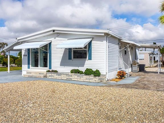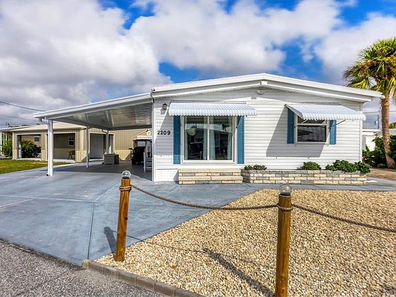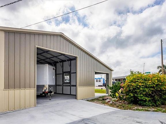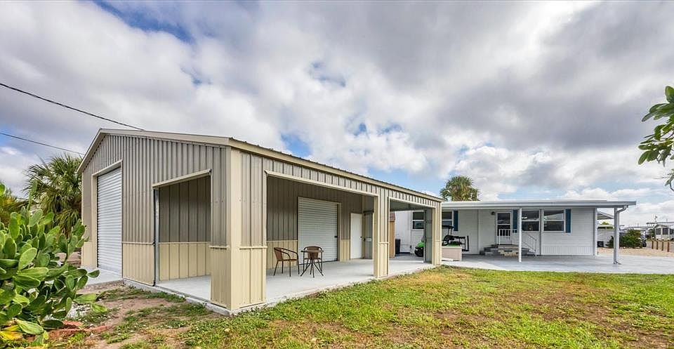 Behind these doors lies the ENVY OF EVERY MAN ON THE BLOCK! A gorgeous Coastal Farmhouse renovation, 2 Bedroom, 2 Bathroom Double Wide Mobile Home, AND a brand NEW 20'x30'x11' detached Garage with attached 12'x30' Carport! Situated on a fantastic double corner lot (almost 6000 sq ft) in the highly desired, active 55+ Trailer Estates community, this property is just one block from the Trailer Estates Marina. Custom Kitchen cabinets, new stainless steel appliances, quartz countertops and ceramic tile backsplash. Custom Bathroom cabinets, solid surface countertops with integrated bowls. New washer and dryer. Luxury vinyl floors throughout, no transitions. All windows and doors replaced. Upgraded insulation. Roof 2019; new AC motor 2024. WDO treated 2025. Paver patio for grilling and gathering, and a separate 8x10 Shed complete this piece of Paradise. The new Garage building has just been completed and electric and water is available and ready for installation, if needed. Bring your classic car, bring your boat, bring your project...the only thing missing is your Big Boy Toys! You own the land. No lot rent, Park Fees are included into annual real estate taxes. Boaters have direct access to Sarasota Bay from the Marina. Trailer Estates community offers so many options for a great day! Enjoy the large, heated community pool, hot tub, gym and wood shop. The community buzzes with pickleball, shuffleboard, kayaking, horseshoes, bocce, dancing and more. A US Post Office on site. 10 minutes to the SRQ Airport. Convenient to shopping, restaurants, the Arts and everything in Bradenton/Sarasota. Sold unfurnished. Bring offers!