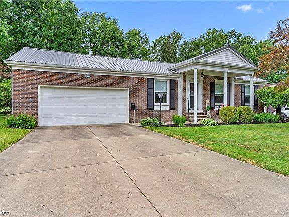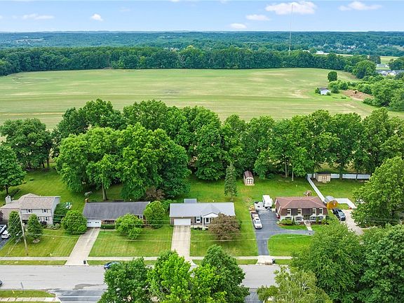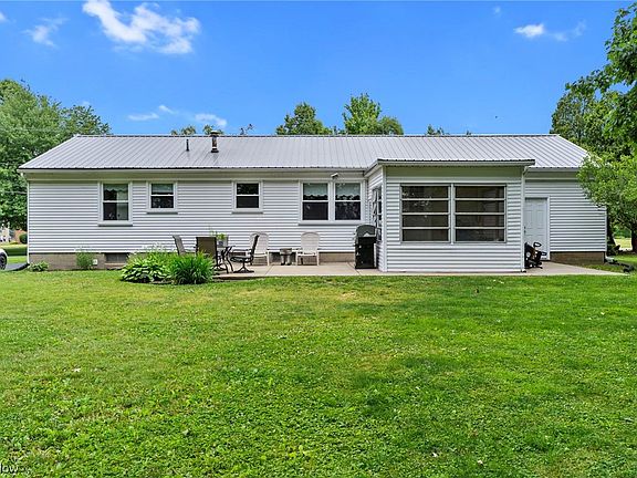 Cozy ranch home located in Salem, Ohio across from Southeast Elementary School. Paved driveway leading to attached 2 car garage and front porch. Home received new windows in 2022. Living room obtains lots of natural light. Spacious kitchen with lovely cabinets and adjacent dining space. 3 bedrooms, 1 ½ bath, providing plenty of living space for family. Home has public water, public sewer. Large partially finished basement/recreation room featuring a bar. Enclosed back patio to enjoy the large, vibrant backyard in any weather. Adjacent uncovered patio space perfect for grill outs! Updates include new metal roof, updated electrical panel, replaced belt in furnace, and recently maintained AC. Call to schedule your showing right away!