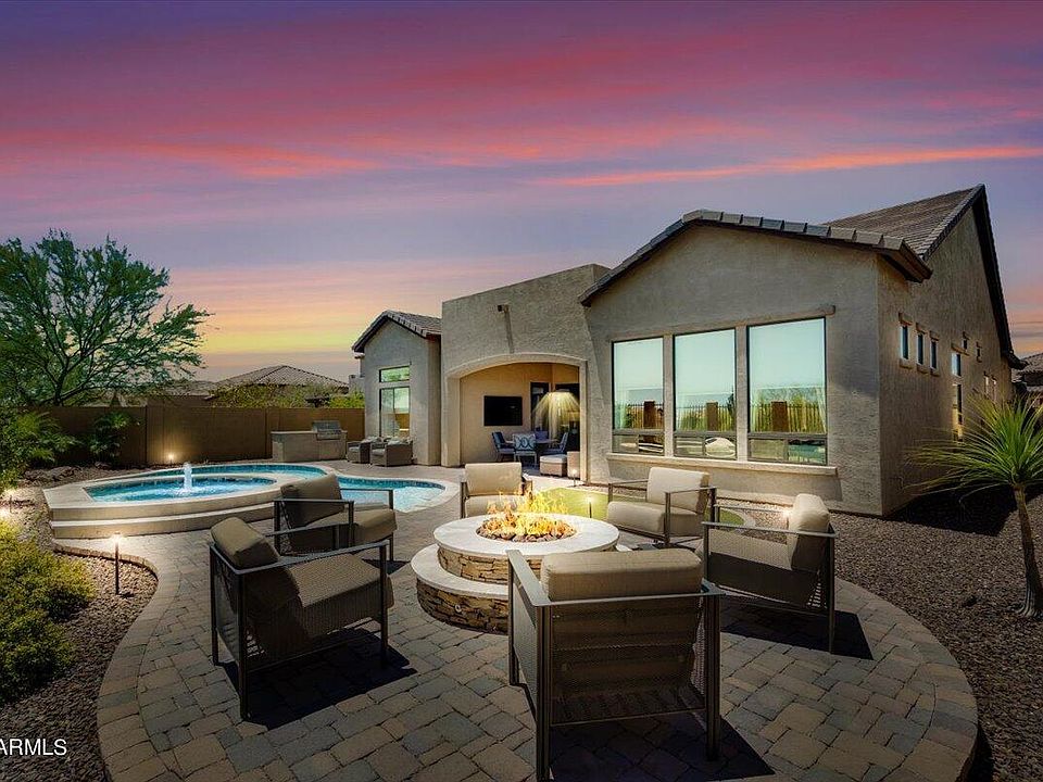 ABSOLUTELY STUNNING 4 bedroom, 4.5 bath, 3 garage home in the sought after Mountain Bridge Subdivision. This home is incredibly designed around every corner! Beautiful floor plan that allows for the perfect indoor/outdoor Arizona living. Open kitchen with large center island, breakfast bar, gas cooktop and ample cabinet space. Kitchen is open to the dining, formal living room and informal living room. Upgrades galore! Surround sound with indoor/outdoor speakers, remote control blinds, built-in cabinets/bar. Master suite features dual closets and en-suite bath with walk in shower and separate soaking tub. Each bedroom has its own en-suite bathroom and walk-in closets. Enjoy the covered patio and take in the breathtaking private views from your back yard. Custom pool with extended baja shelf and water feature in the spa. On those cool summer nights, you will love spending time near the gas fire pit. All of this is available on your premium lot with desert and mountain views. Community amenities at Mountain Bridge include resort-style pools, spa, fitness, tennis, event lawns, parks. Easy access to shopping, dining, Sky Harbor Airport and Mesa Gateway Airport.