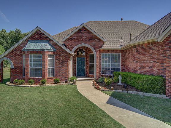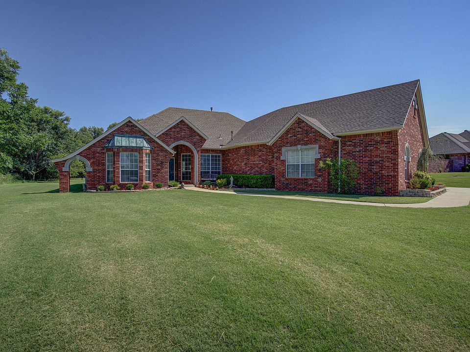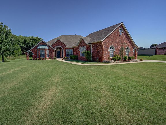 Rare find in Moore! 4 bedroom home plus bonus room with pool and 30x30 shop on 1 acre! Spacious open kitchen/dining/living design. Kitchen features breakfast bar, pantry, double oven, new granite countertops, back splash and 60/40 split granite composite sink in 2018. Wood floors installed in breakfast room, laundry, formal dining and hallway in 2017. Split bedroom plan offers privacy to the master and en suite boasting double vanities, garden tub, granite counters and large walk-in closet. Gorgeous gas fireplace in living room leads you to the covered back patio! Outside there is plenty of room for activities near the creek, around the pool, to pick fruit from the fruit trees, or work in the insulated shop. All this plus fully decked attic, oversized 3 car garage, and 8-10 person in-ground storm shelter.