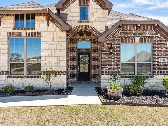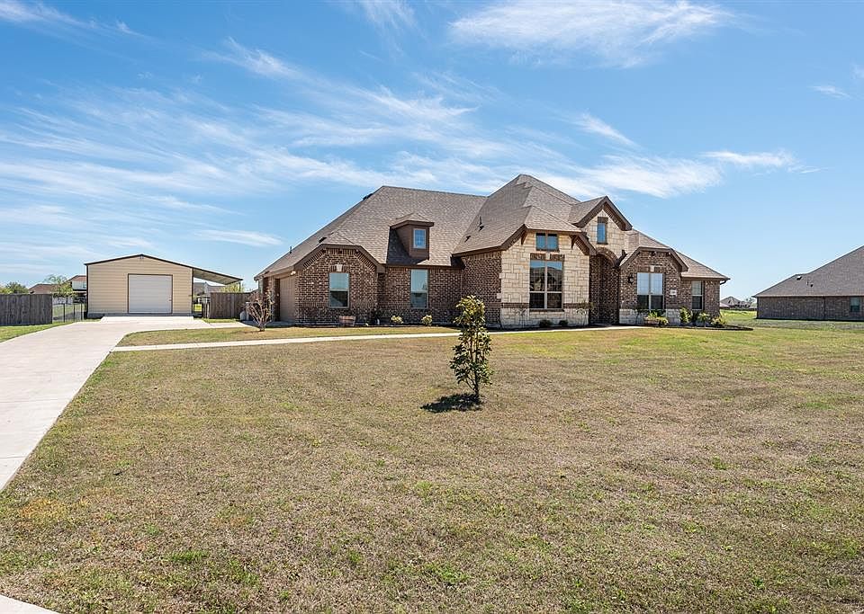 STUNNING 1 STORY 4-2-2 loaded with beautiful upgrades! Crandall ISD & Low Property Taxes! Brick & Stone front elevation, extended side swing drive sitting on 1.039 Acre lot. Open concept Floor plan with crown moulding, neutral colors, extensive wood look tile flooring & new carpet in Bedrooms. Lrg Gourmet Kitchen, wrap around breakfast bar, granite, walk in pantry, SS appliances opens to both casual dining & formal dining. Spacious Living area with cast stone Fireplace & 17x15 2nd living can be game room or children's retreat. Split Bedrooms. Large master suite, 2 walk-in closets, 2 sink vanity, over sized shower & garden tub. 25X45 Workshop with electric, windows, ext door & 12X45 side covered porch.