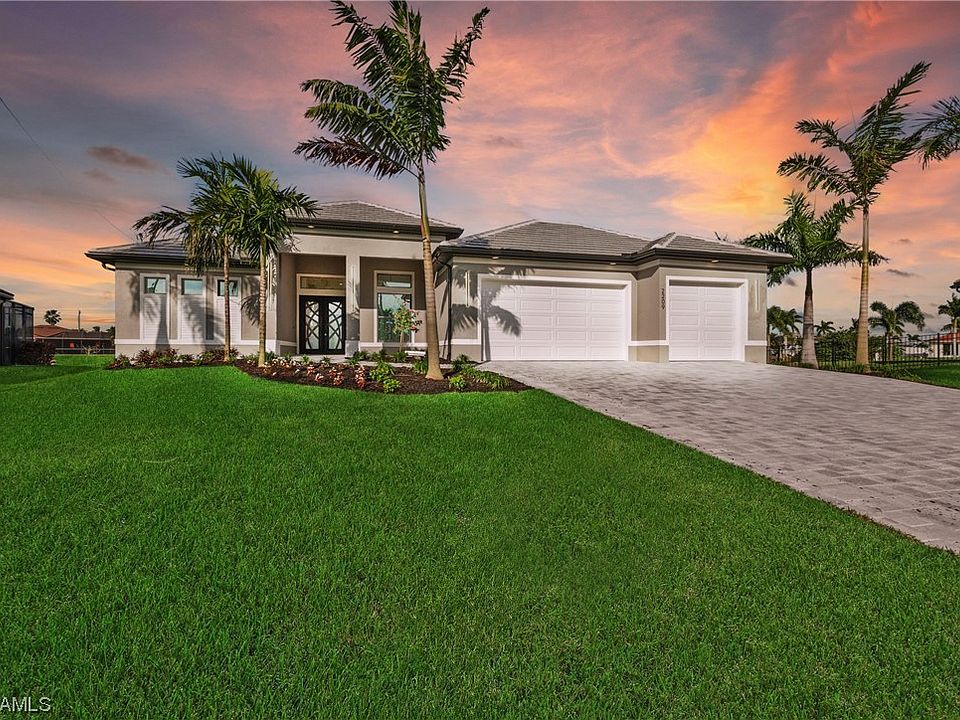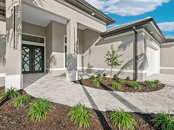 The photos are of a finished model.. fixtures. backsplash, tile and quartz may vary. Introducing a luxurious masterpiece in the desirable SW Cape Coral area, this new construction home offers a perfect blend of elegance and functionality. One of the most exceptional features is the 100 ft wide gulf access canal. Whether you're a boating enthusiast or simply enjoy serene water views you will be in awe. This home exudes luxury and comfort making it a rare gem in the real estate market. Boasting 3 bedrooms and 3 baths, this stunning property has an additional 400 sq ft of inviting outside living space. Step inside to discover a thoughtfully designed indoor and outdoor living. The grand kitchen features top-of-the-line Jen Air appliances, a 90-degree doors creating a spacious interior and the outside patio. Outside, relax with a marble pool patio overlooking the sparkling heated saltwater pool and spa. The summer kitchen, complete with high-end appliances. The attention to detail is evident in every corner of this home, from the roof to the impact windows and doors as well as a 3-car garage. Welcome home to your own piece of paradise. All photos are of similar home that is completed.