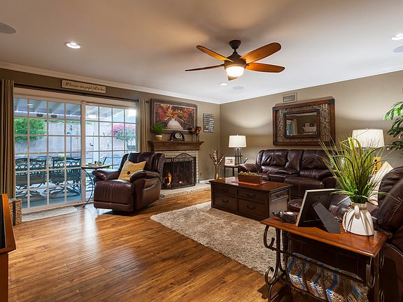 When I say this property is a DREAM ~ BELIEVE IT!! The attention to detail is amazing. To start with-NEWER 18 PANEL SOLAR SYSTEM 2017! The front yard is adorable with brick planters,walkway, artificial turf and lighting. The driveway has been widened to create a wonderful RV access AND the seller has added a 30 amp electrical panel for RV hookup. The color combination of shutters and garage door add to the darling curb appeal. The kitchen is complimented by beautiful soft closing cabinetry, glass front cabinets, recessed lights and stainless steel appliances. Granite counters and a breakfast bar. Remodeled baths! There is also beautiful crown molding, recessed lights, newer hardware, custom FP mantle and wonderful sliders out to the rear yard.The incredibly done rear yard is perfect for small intimate gatherings or large groups. The covered patio,ceiling fan and TV create the perfect outdoor living space.. Built in BBQ with granite counter, appliances, umbrellas, gorgeous stacked stone seating, raised flower beds & sun shades. Spa situated perfectly in the corner and the seller raised the walls for complete privacy! AND. I will conclude w/an upgraded GARAGE-Drywall,lighting and tankless water heater. ~ABSOLUTE LOVE and PRIDE OF OWNERSHIP HERE~
