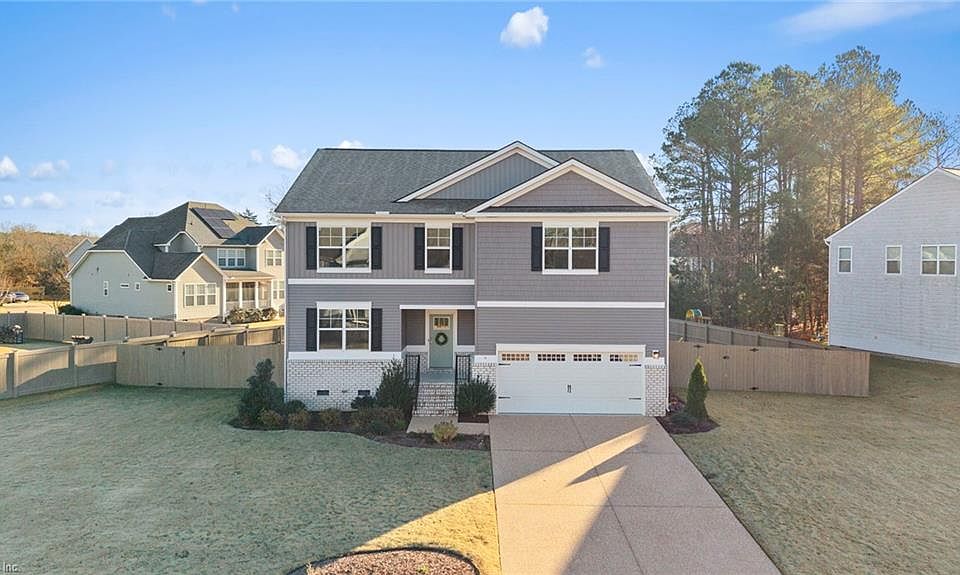 Built in 2022 and located in Peleg’s Point, this beautifully updated 4 Bedroom, 2.5 Bath home offers over 2,900 sq ft of bright, open living and an ideal layout for entertaining. The main level features a spacious family room with sliding doors to the new deck, plus a gorgeous kitchen with granite countertops, stainless appliances, a large center island with a breakfast bar, and an upgraded walk-in pantry with custom cabinets/shelving. Upstairs you’ll find a generous primary suite with an ensuite equipped with dual vanities and two large walk-in closets, along with three additional bedrooms and convenient upstairs laundry. Updated lighting, mirrors, hardware, and LVP flooring throughout. The fully fenced yard with professional landscaping is perfect for outdoor living. Smart home features, energy-efficient systems, and a two-car garage complete this move-in ready home—just minutes to Colonial Williamsburg, Jamestown Beach, Billsburg, restaurants, parks, and more.