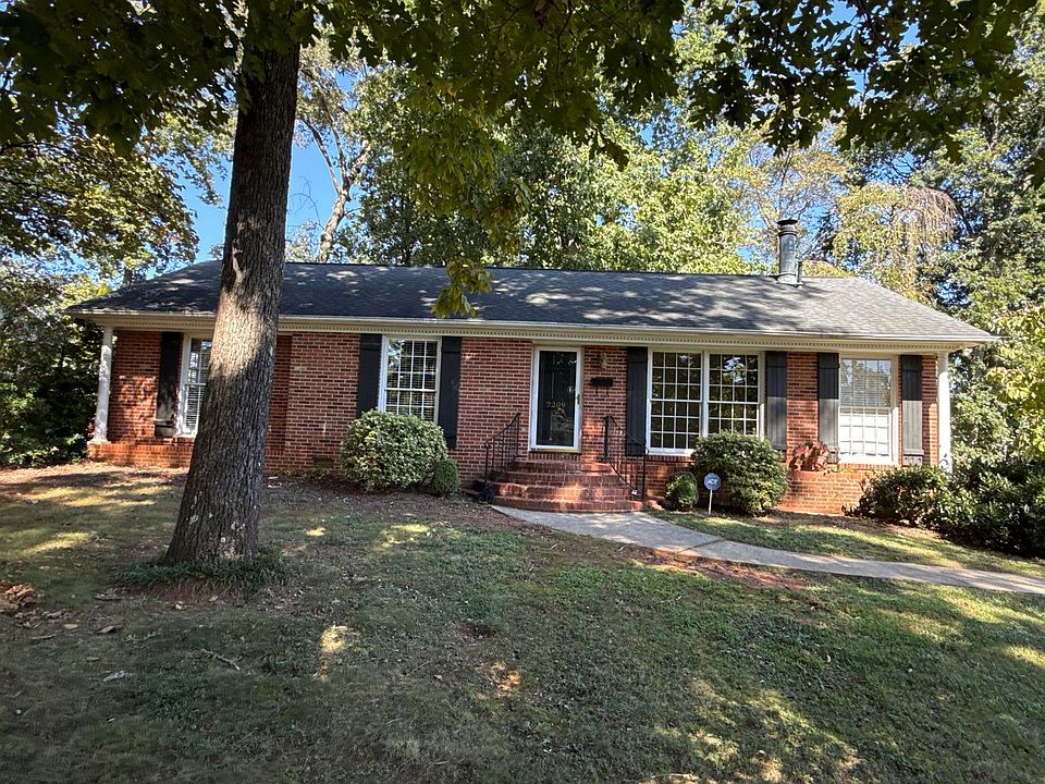 Lovely brick ranch in the heart of Charlotte. The kitchen is complete with stainless steel appliances, beautiful wood cabinets, tiled backsplash, and a dining nook. The spacious living room has hardwood flooring and a wood-burning fireplace. Natural light is always in abundance with lots of windows around the home. One primary bedroom and 2 other bedrooms are all carpeted. Enjoy the beautiful fall weather in the backyard.