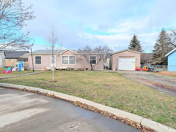 South La Grande Home on a cul-de-sac now available at an affordable price! This floor plan offers privacy in the spacious master bedroom and en suite bathroom on one end of the home, featuring an oversized closet and vaulted ceilings. Separated by the common spaces of the home, the floor plan comes with two additional bedrooms and a main hall bathroom. The common space has an open and inviting area between the living room, dining room and kitchen. Sitting on the inside of the cul-de-sac, this property has plenty of parking with a long driveway, large front yard and has a detached garage. This home can be moved right into at a price that allows for comfort and room to make it your own as you dream of the possibilities!