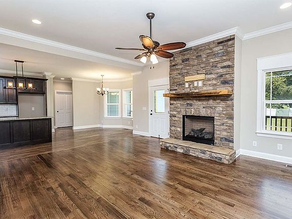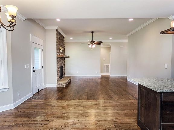 One-level living with extra finished space upstairs! Walk in through the front door to an open floor plan with hardwood in the living room, dining area, and kitchen. Enjoy an extra room off the kitchen and foyer as either an office or dining room. This house comes with three bedrooms on the main level with the owner's suite on its own hallway. Master bathroom includes tile walk-in shower. Granite countertops and custom cabinets throughout, including kitchen tile backsplash. The living room's focal point is a beautiful stone fireplace to use in the winter months. Upstairs comes with a fourth bedroom, family room and bathroom. A level backyard and large front & back porches give the owner multiple outside areas to entertain. Double garage has a large storage area in the back. Rooms have cat6 ethernet and cable coaxial jacks. Home has a hide-a-hose central vacuum with attachments included.