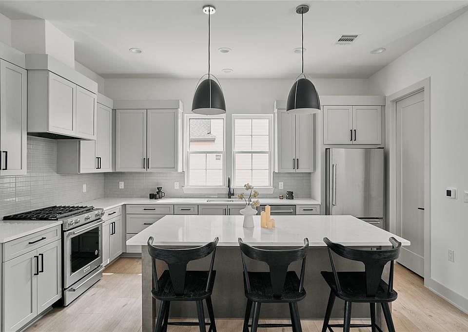 Discover The Juniper, a thoughtfully crafted 2-bedroom, 2.5 bathroom luxury townhome. Each residence includes a privately fenced and landscaped yard or a premium patio, a two-car garage, and a flexible first-floor bedroom with an en suite bathroom—perfect for guests or a dedicated home office. Upstairs, enjoy an open-concept living area that flows into a modern kitchen with a half bath and convenient laundry access. The primary suite offers soaring 14-foot ceilings, abundant natural light, a spacious en suite bathroom, and a large walk-in closet.