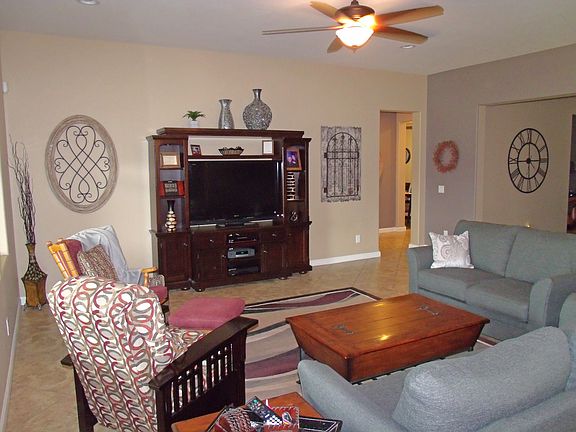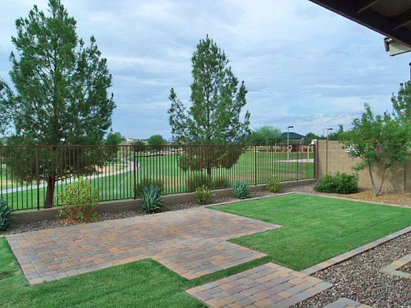 This gently lived-in Charleston Estates home built in 2014 sits on a premium lot with mountain views, is surrounded by greenbelts, walking trails and parks. Located in prime Queen Creek area just one mile from exciting downtown w/ plenty of dining, shopping and entertainment. This home offers an open floorplan w/Formal Dining, a Den/Office and Gourmet Kitchen w/double ovens, gas cooktop, upgraded cabinetry, walk-in pantry w/see through door and s/s appliances. The Master bath offers a large shower with sit-down ledge, tub, his/hers separate vanities and a large walk-in closet. Want more? Energy Star certified, Ceiling fans throughout, extended length 3 car garage! The front stonework, paved driveway and gated courtyard entry make for an attractive curb appeal. Make this home yours, today!