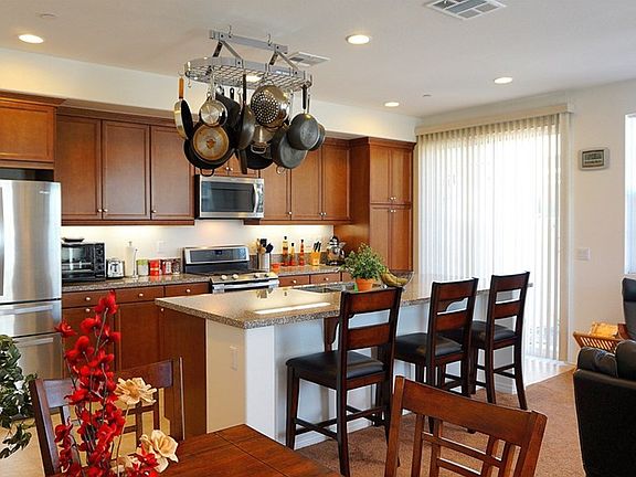 New Gated River Village Hartford Collection Home. Largest Model Residence 3 End Unit. This home features 4 bedrooms all upstairs with additional loft area perfect for office niche or game area for the kids. Gorgeous designer kitchen features custom chestnut stained cabinets, Granite oversized island, counter tops and backsplash, stainless appliances, stainless sink. Recessed lights, ceiling fans. Spacious master suite with large walk in closet, master suite bath includes dual vanities, separate walk in shower and spa-inspired soaking tub for relaxing. Every room hard wired for fast Internet with Fiber Optics. This is a Energy Star rated home including a tankless water heater, 15 SEER HVAC system, fire sprinkler system, radiant roof & whole home wrap system, Christmas lighting package. Conveniently attached 2 car garage fully dry walled with extra storage. Your own backyard with room for outside entertaining or BBQ area. Gated main entry and the HOA amenities include a pool, spa, BBQ area, Picnic & Playground area. Located close to shopping, schools, eateries, freeway access.