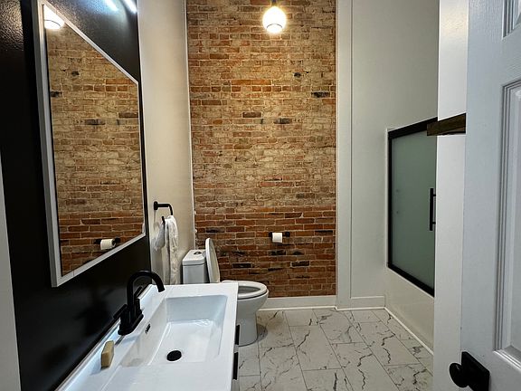 Prepare to be wowed the moment you step inside. Soaring 12-foot ceilings, original hardwood floors, exposed brick walls, and an original tin ceiling create a dramatic, one-of-a-kind atmosphere you won't find anywhere else. Massive windows flood the home with natural light, highlighting the character and craftsmanship of this beautifully restored space.